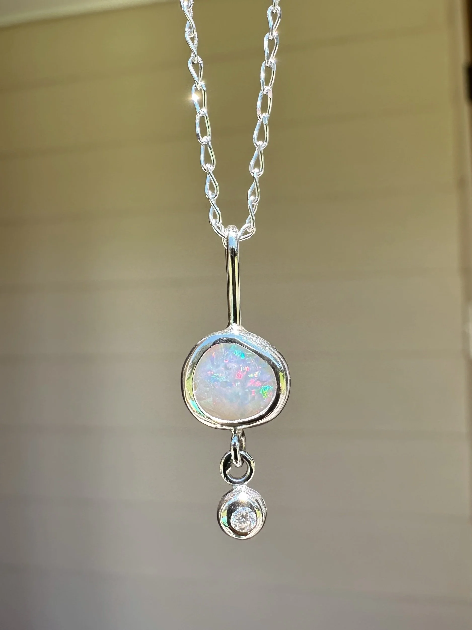 Milky Opal + Moissanite Necklace
