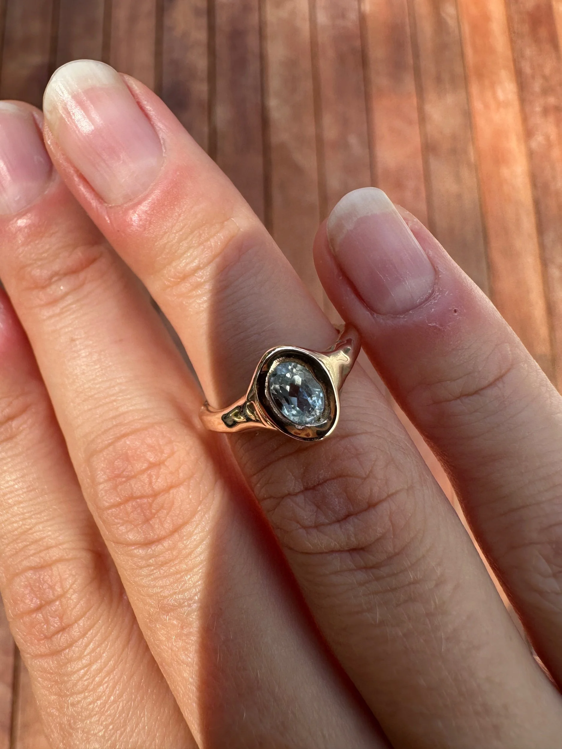 9ct Gold Molten Aquamarine Ring