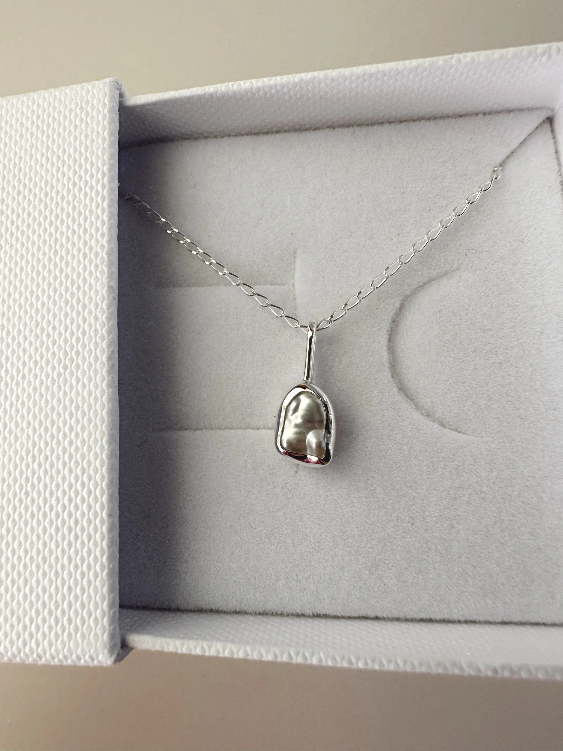 Pearl + Solid Silver Shell Necklace